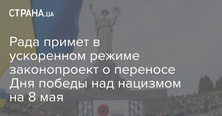 Законопроект президента України Володимира Зеленського про перенесення Дня перемоги над нацизмом на 8 травня Верховна Рада прийматиме у прискореному режимі.