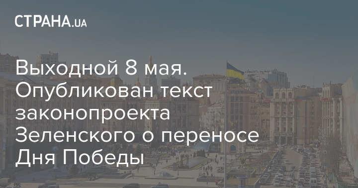 Опубліковано текст законопроекту №9278 "Про День пам'яті та перемогу над нацизмом у Другій світовій війні 1939-1945 років". Це законопроект про перенесення Дня Перемоги на 8 травня, внесений до Верховної Ради президентом України Володимиром Зеленським.