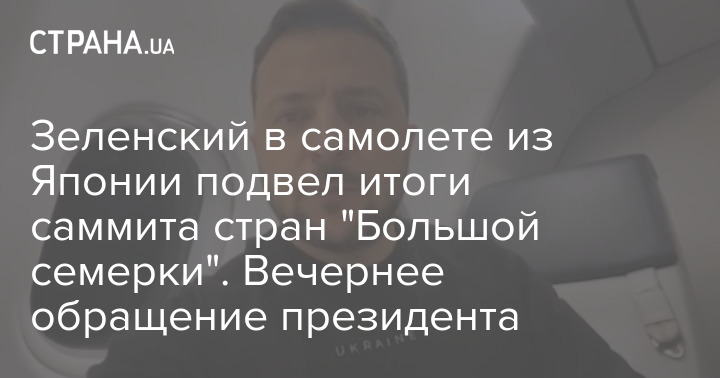 Зеленський у літаку з Японії підбив підсумки саміту країн "Великої сімки". Вечірнє звернення президента