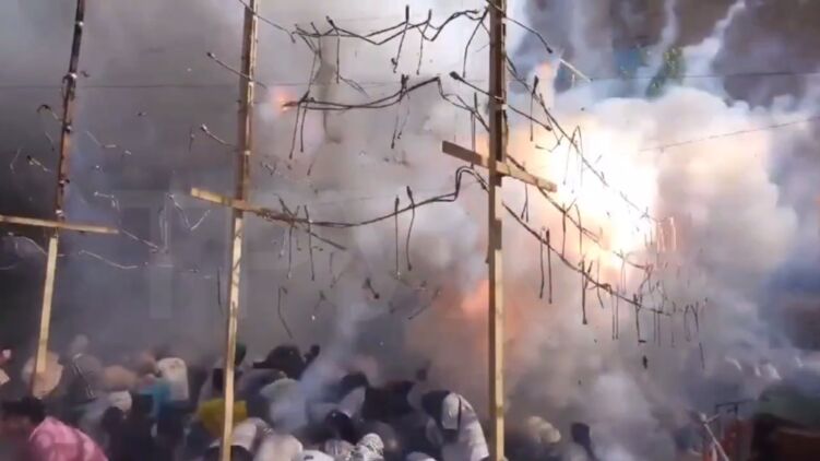 На відео можна помітити, що петарди та салюти вибухають прямо у натовпі.