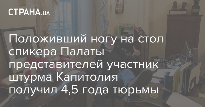 Учасник штурму Капітолію, який поклав ногу на стіл спікера Палати представників, отримав 4,5 роки в'язниці