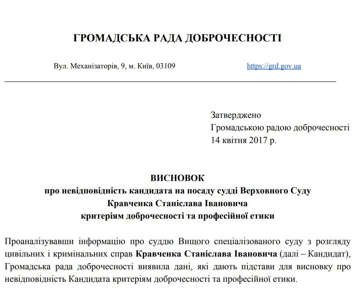 Кравченко прокоментував цю претензію сьогодні. Він сказав, що із висновком Громадської ради доброчесності був не згоден і подав на нього апеляцію, яку так і не розглянули. Крім того, за його словами, два роки тому Національне агентство боротьби з корупцією двічі провело за ним перевірку, яка тривала вісім місяців і в результаті жодних порушень у деклараціях не виявила.
