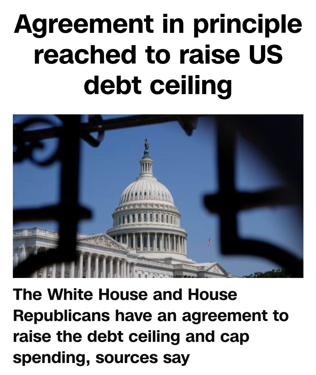 Представник республіканської більшості в Конгресі Кевін Маккарті повідомив, що президент США Джо Байден і Конгрес дійшли згоди про підвищення стелі держборгу США на два роки.