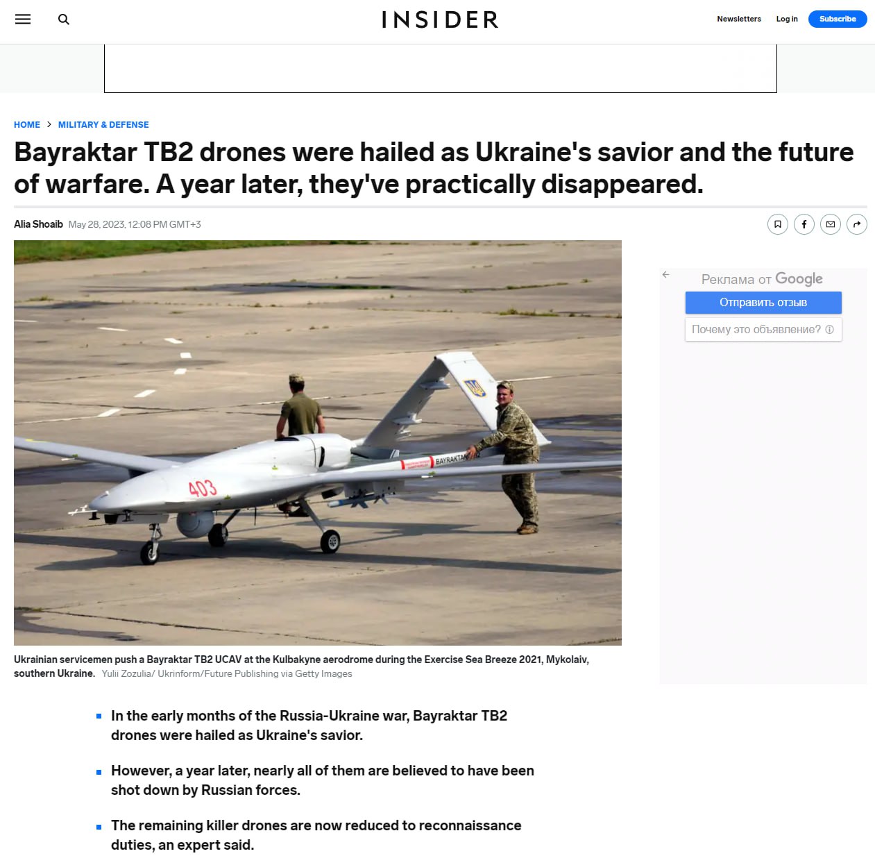 "Загальна оцінка безпілотників, таких як TB2, полягає в тому, що вони добре працюють, але тільки за умови, що у противника немає сильного протиповітряного та радіоелектронного захисту", - сказав Семюел Бендетт, експерт з безпілотних та роботизованих військових систем у Центрі військово- морського аналізу.