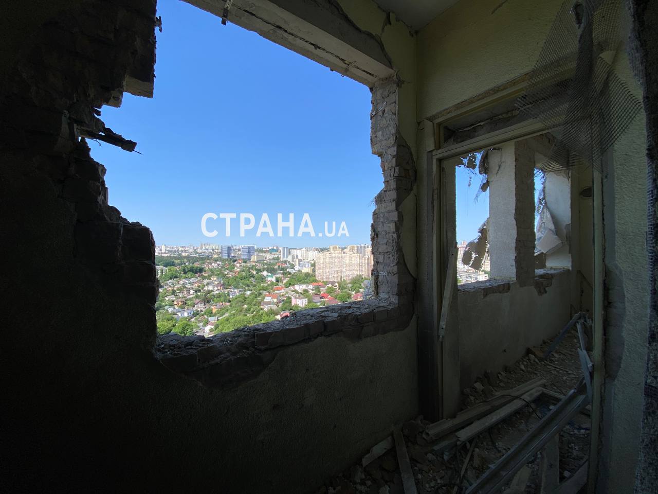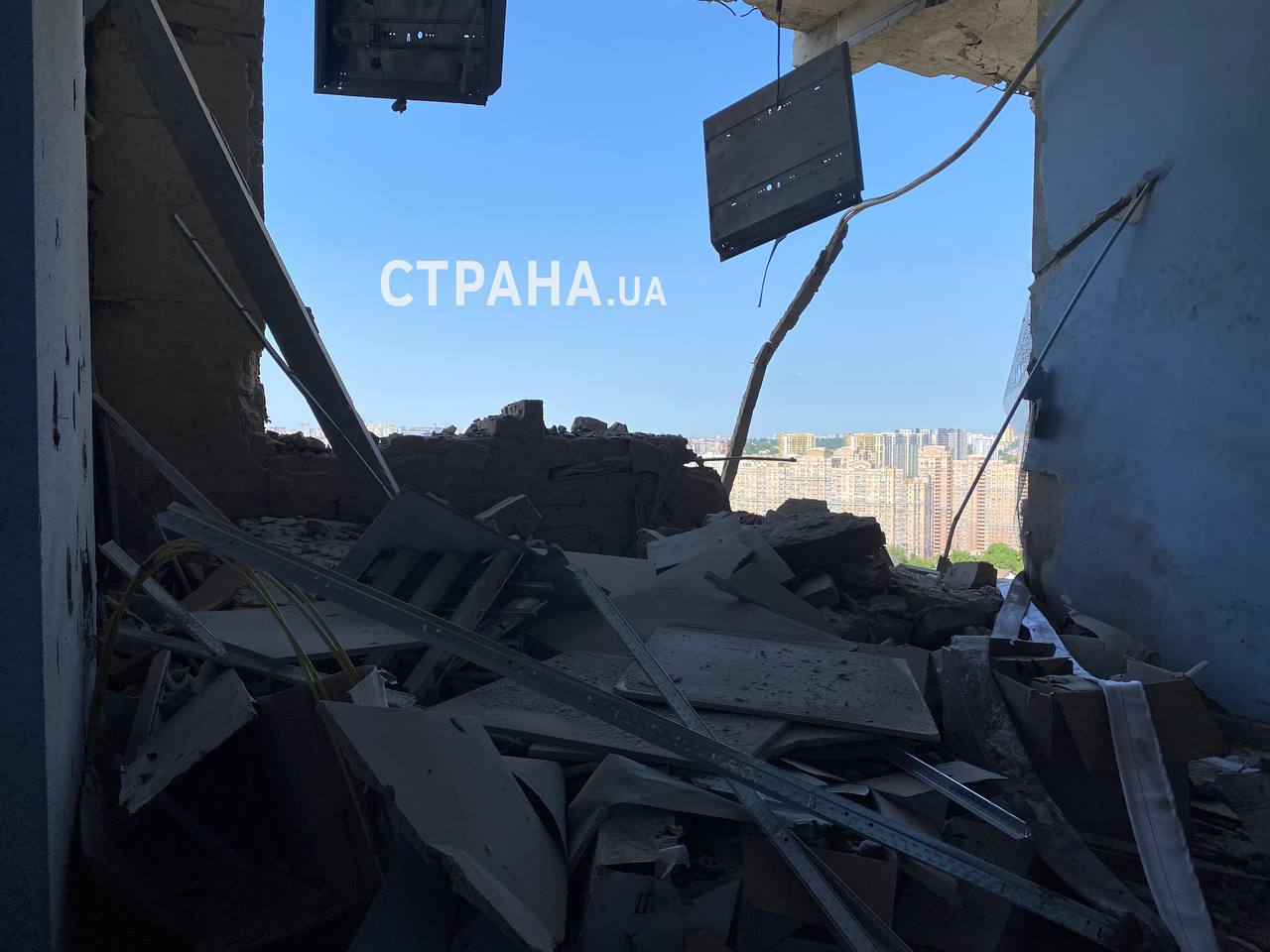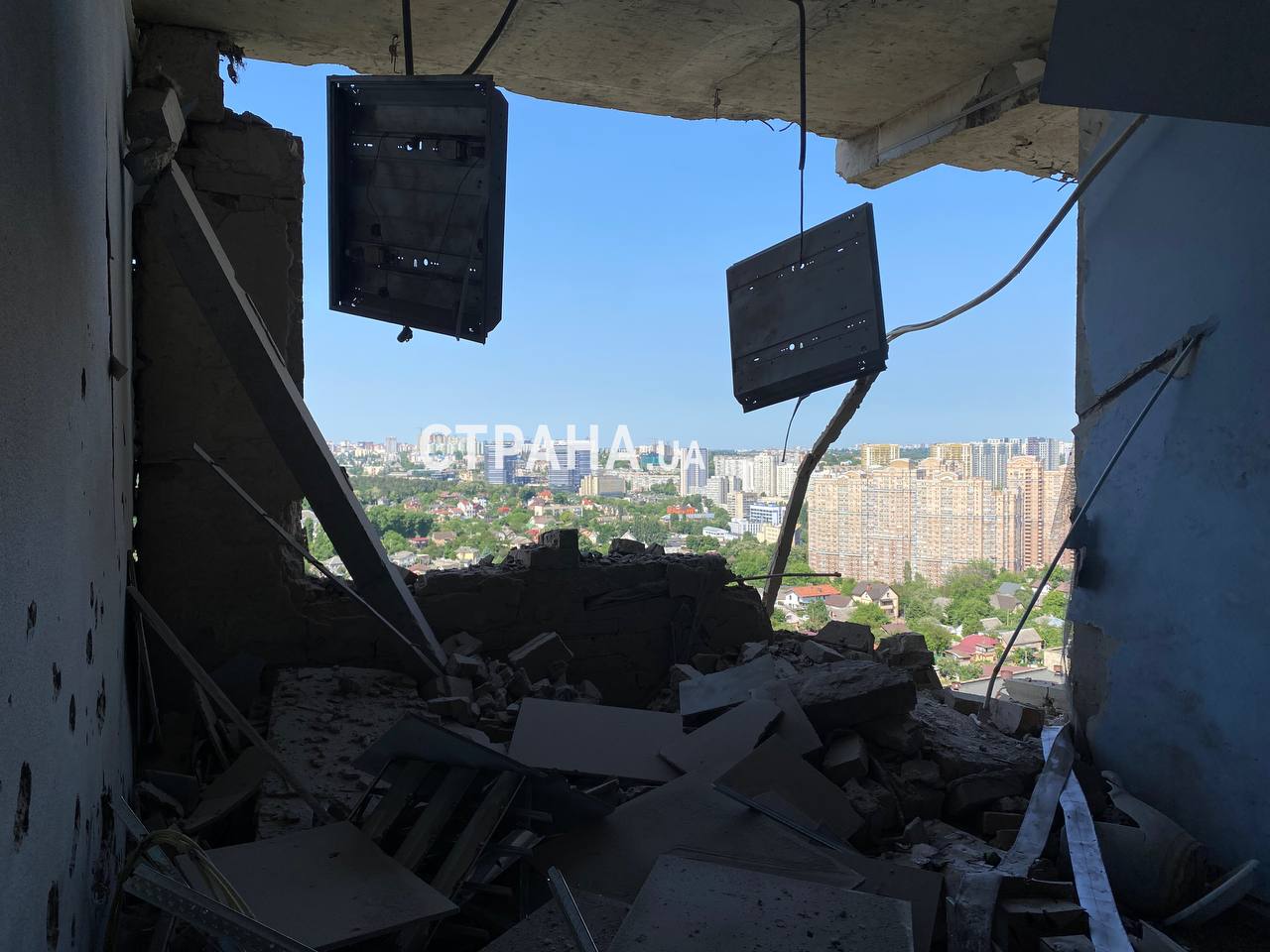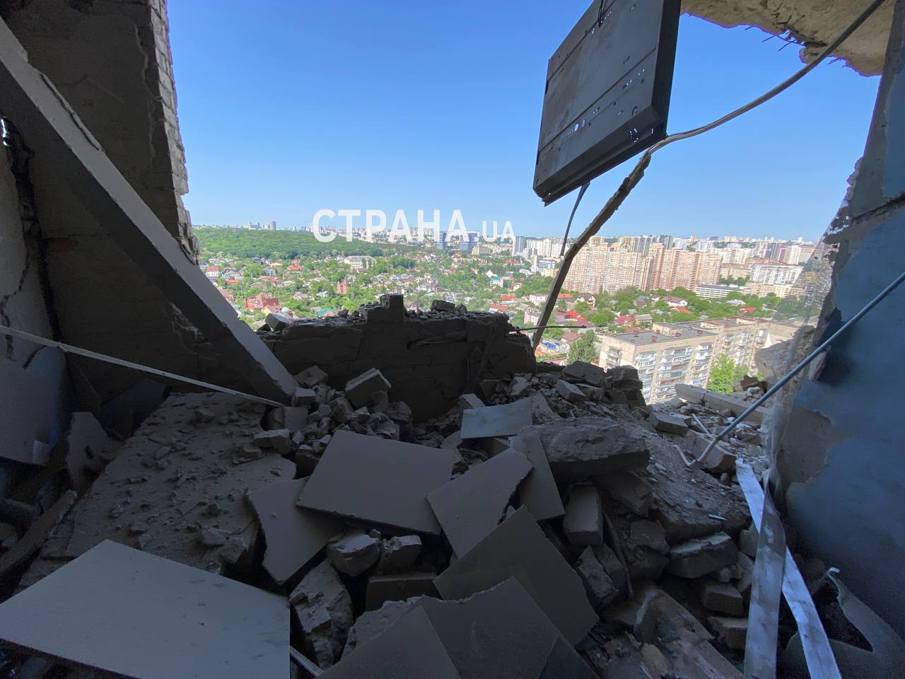 Кадр із зруйнованих поверхів у багатоповерхівці Голосіївського району. Фото: "Країна"