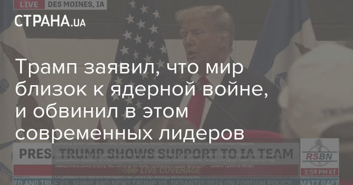 "Ми дуже близькі до ядерної війни, і у нас є люди, які уявлення не мають, що це відбувається. І наші так звані лідери… І "так звані" – це відмінний термін для них. Так от ці люди ставлять усіх нас під небачену" раніше загрозу. Ми ніколи не були такі близькі до краю прірви", - заявив Трамп на виступі в Айові.