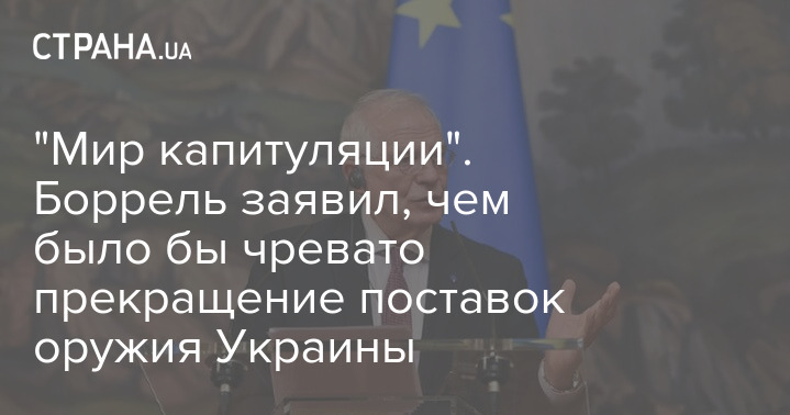 У разі припинення постачання зброї до України війна з Росією закінчиться для Києва "світом капітуляції". Про це повідомив Верховний представник ЄС із закордонних справ та політики безпеки Жозеп Боррель.