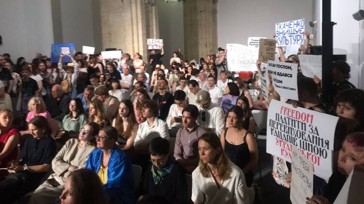 У Києві під час ХІ міжнародного фестивалю "Книжковий арсенал" пройшла акція протесту з вимогою відправити у відставку міністра культури Олександра Ткаченка.