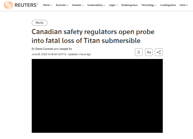 Канада розпочала власне розслідування загибелі пасажирів батискафу "Титан" - Reuters