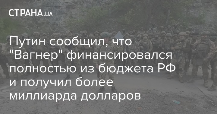 "Хочу, щоб ми всі знали про це: утримання всієї групи "Вагнера" повністю забезпечувалося державою. З Міністерства оборони, з державного бюджету ми повністю фінансували цю групу. Ось тільки з травня 2022 року до травня 2023 року на грошове утримання та стимулюючі виплати держава заплатило компанії "Вагнер" 86 млрд 262 млн рублів. З них грошове утримання 70 млрд 384 млн, що стимулюють виплати 15 млрд 877 млн, крім того, 110 млрд 189 млн було виділено на страхові виплати", - уточнив президент Росії.
