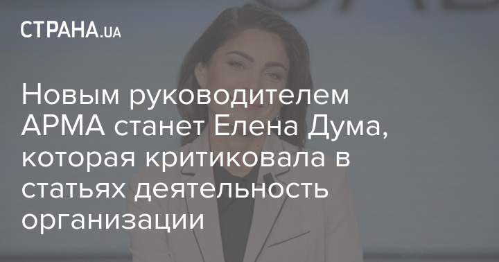 Новим керівником Національного агентства з питань виявлення, розшуку та управління активами, отриманими від корупційних та інших злочинів (АРМА), стане Олена Дума - експерт з питань антикорупційної, екологічної та соціальної політики. Вона перемогла у конкурсі.