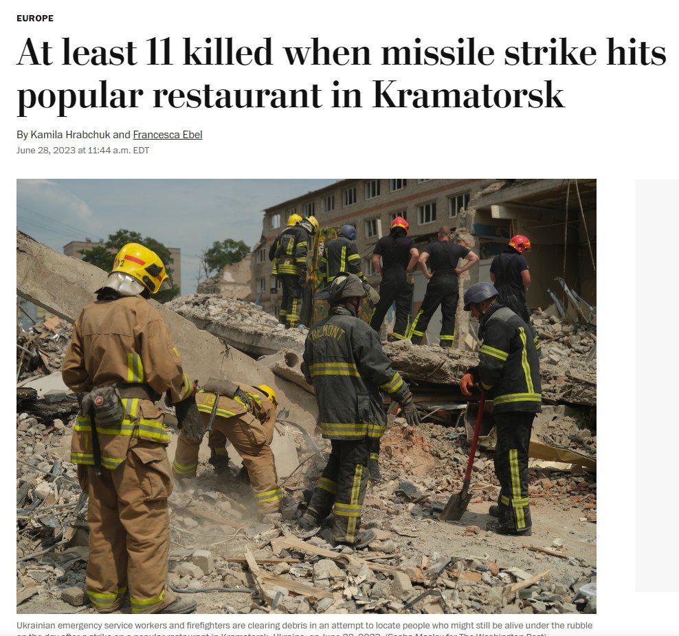 09.03 Washington Post пише, що зруйнована в Краматорську піцерія була улюбленим місцем іноземних журналістів, волонтерів та українських солдатів.