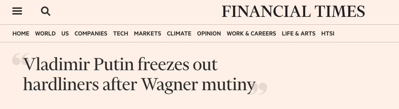 10.35 Після заколоту Вагнера "у Заходу тепер менше причин турбуватися про передбачувані червоні лінії Путіна" у справі постачання зброї Україні.