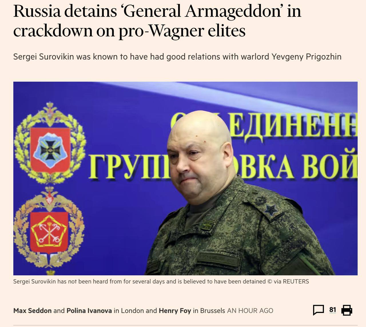 14.25 Російського генерала Суровікін затримано, заявляє Financial Times з посиланням на три джерела.