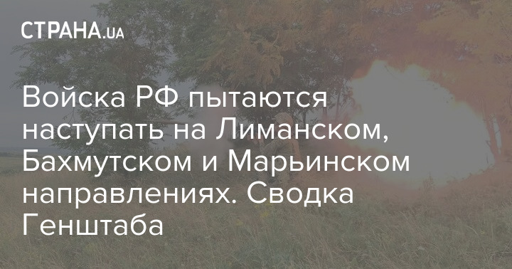 Російські війська зосереджують основні зусилля на Лиманському, Бахмутському та Мар'їнському напрямах, там тривають важкі бої. Протягом доби сталося 46 бойових зіткнень.