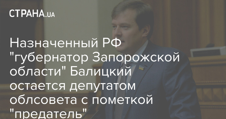 Призначений Росією "губернатор Запорізької області" Євген Балицький досі залишається депутатом Запорізької обласної ради.