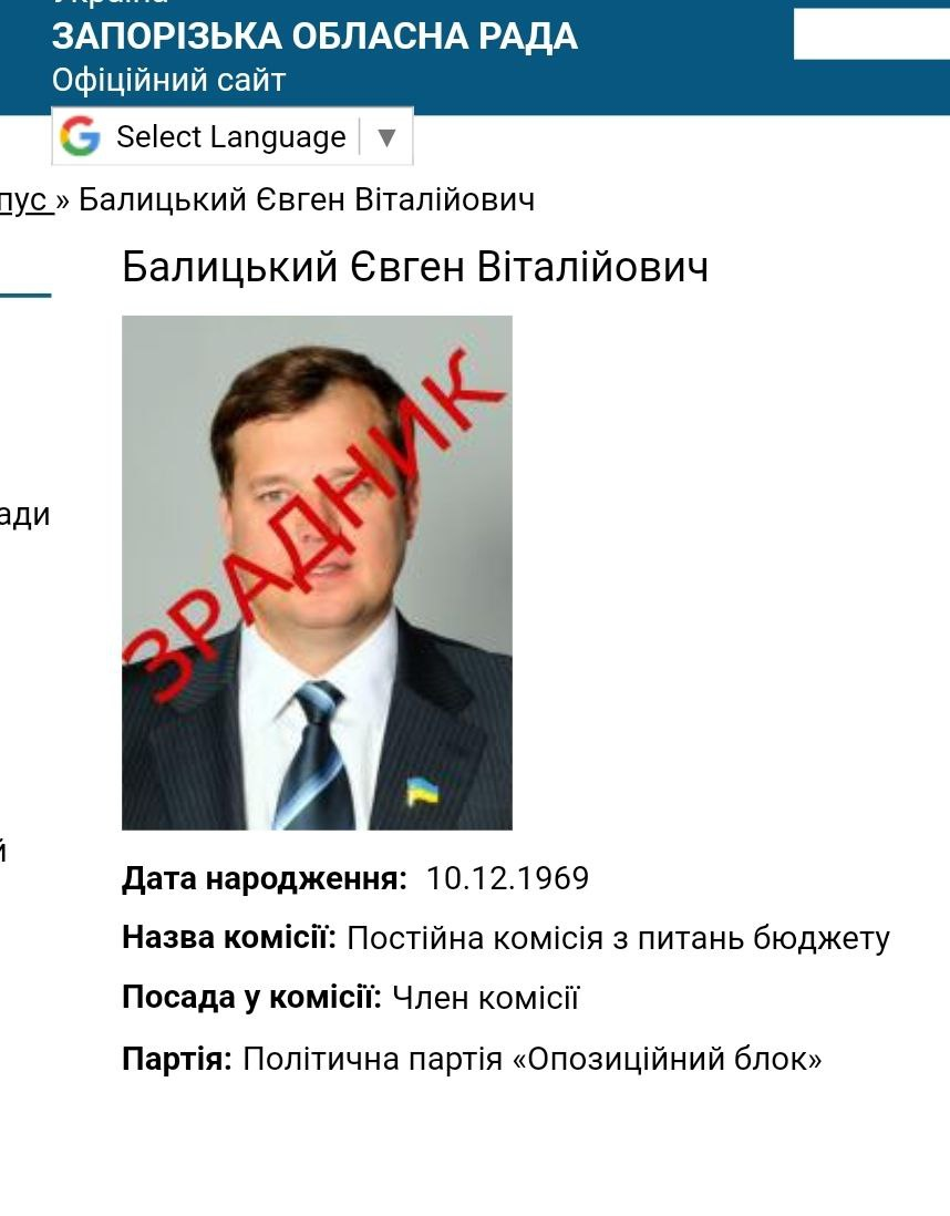Зазначимо, що на сайті облради Балицький значиться як чинний депутат, але з позначкою "зрадник".