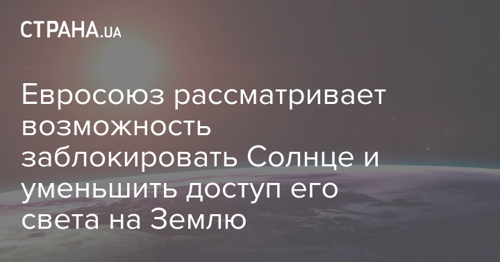 Євросоюз розглядає можливість заблокувати Сонце та зменшити доступ його світла на Землю