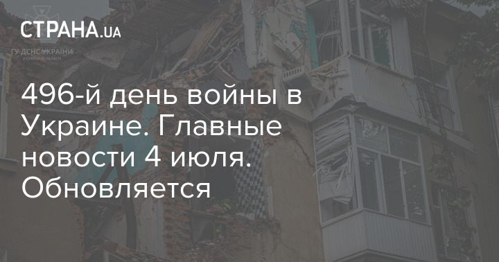 У вівторок, 4 липня, в Україні триває 496 день війни з Росією.
