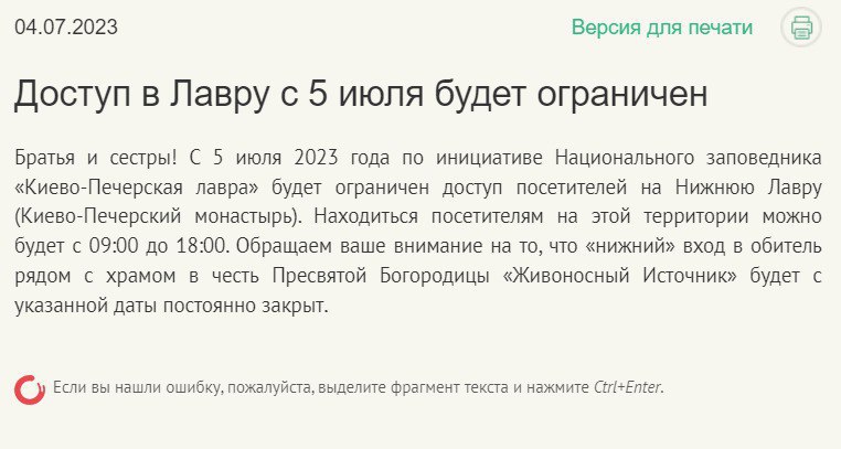 Доступ відвідувачів на територію Нижньої Лаври з 5 липня 2023 року буде обмежено з ініціативи Національного заповідника "Києво-Печерська лавра".