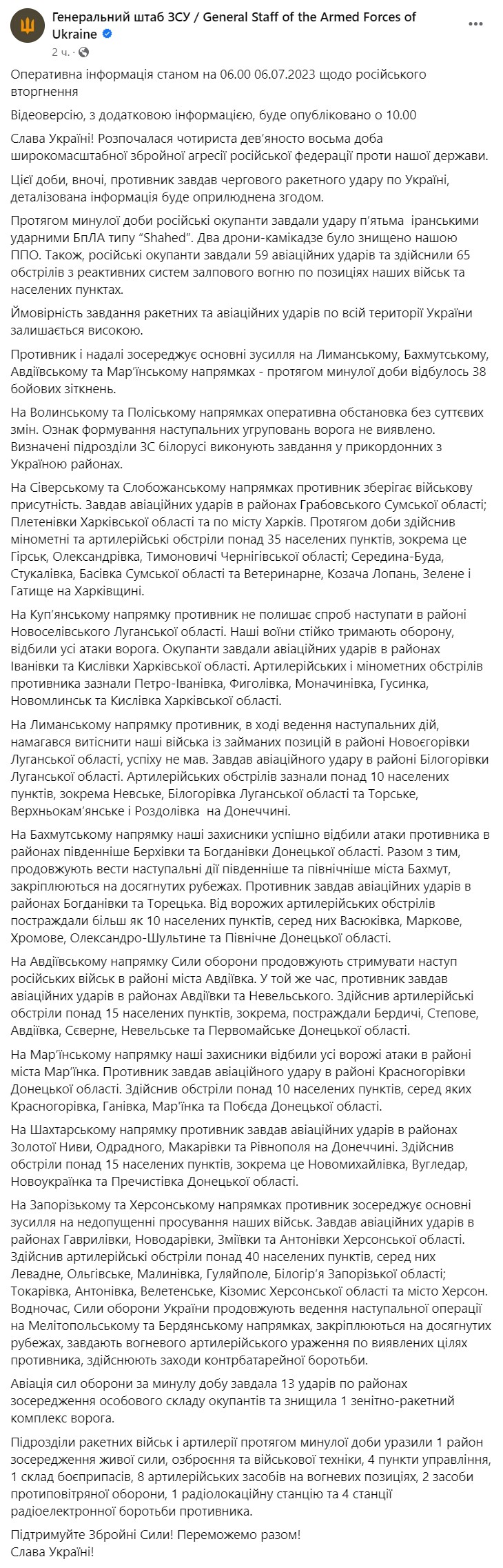 Війна в Україні триває 498-й день. Ми стежимо за новинами 6 липня 2023 року у своєму онлайні.