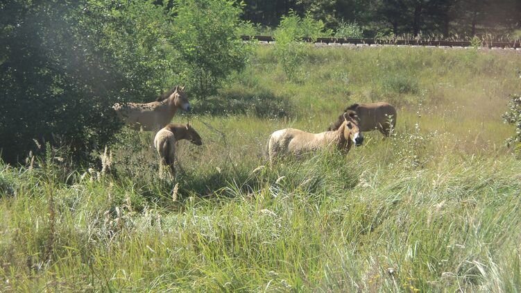 Чорнобильський радіаційно-екологічний біосферний заповідник опублікував фотографію коней Пржевальського серед літніх трав.