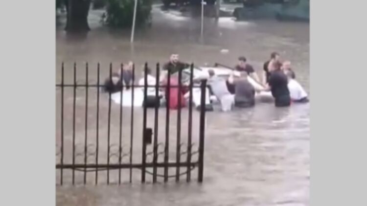 На відео можна побачити, що поліцейські допомагають мешканцям рятуватися від негоди.