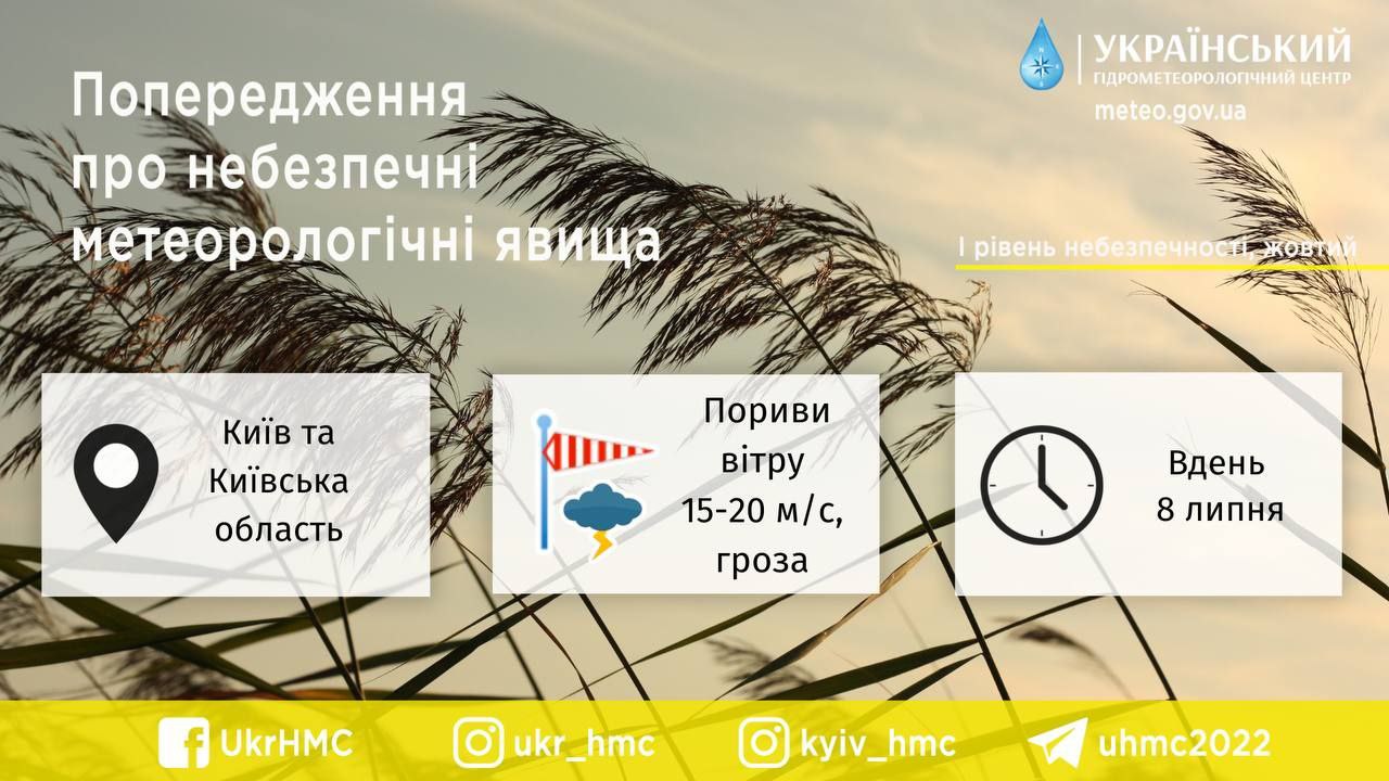 Грози та сильний вітер. У Києві оголошено перший рівень небезпеки