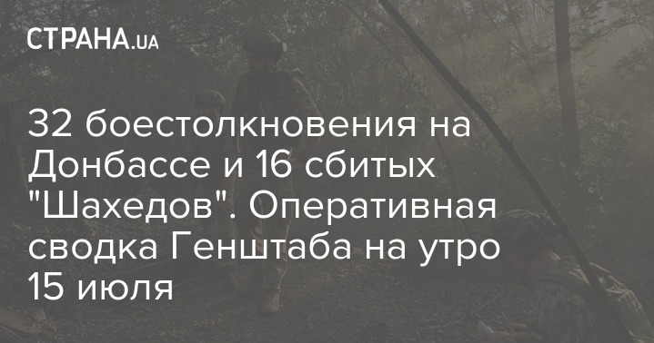 32 бойові зіткнення на Донбасі та 16 збитих "Шахедів". Оперативне зведення Генштабу на ранок 15 липня
