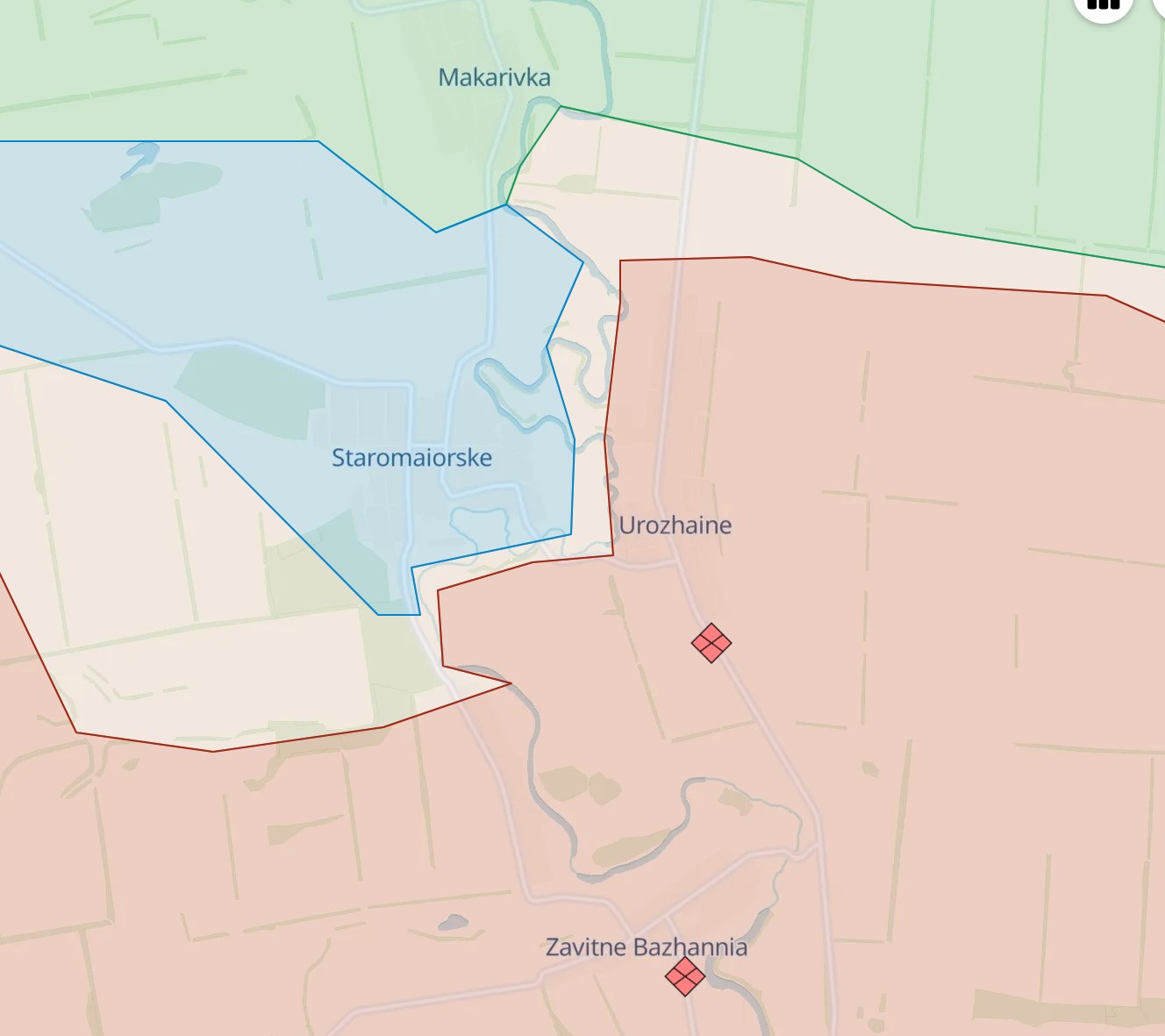Українські телеграм-канали станом на вчорашній вечір також не фіксували втрати Старомайорського та повідомляли, що ЗСУ навпаки штурмують північні околиці сусіднього села Урожайне.