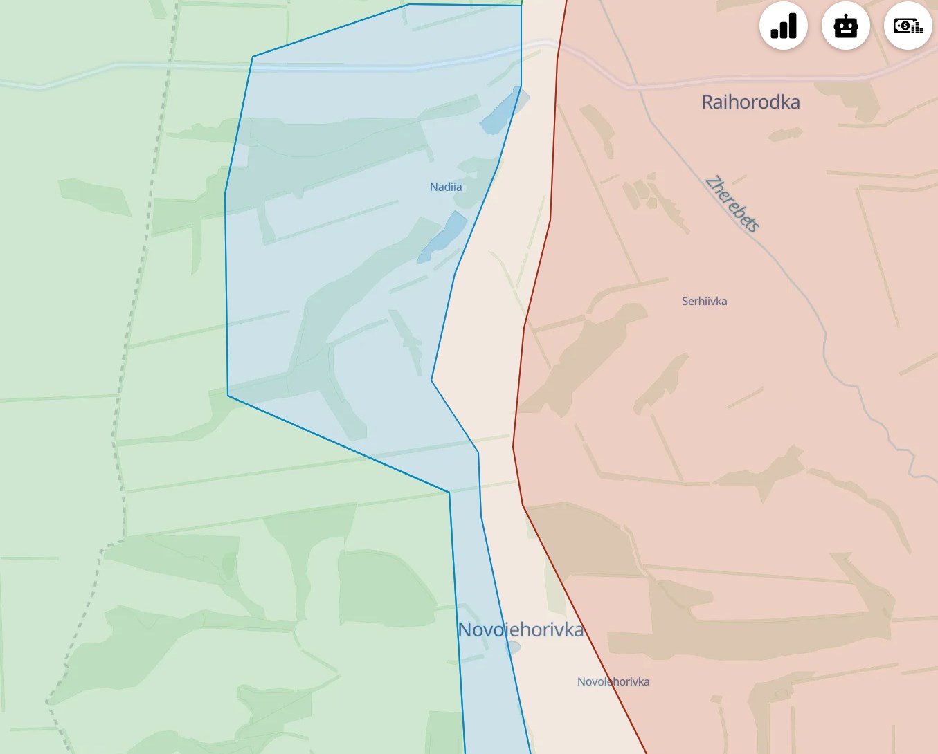 Російські пишуть, що остаточно захоплено Новоєгорівку. Українці - що противник тільки на східних її околицях, а ЗСУ змогли стабілізувати лінію фронту на даній ділянці та відкинути росіян у тому числі від села Надія.