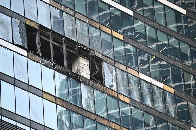 Як повідомив мер Москви Собянін, порушено скління на 21 поверсі будівлі.