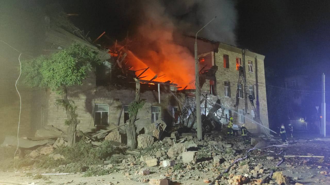 07.37 У Харкові через нічну атаку безпілотників дві будівлі були зруйновані, в одній з них сталася пожежа, повідомляє ДСНС.