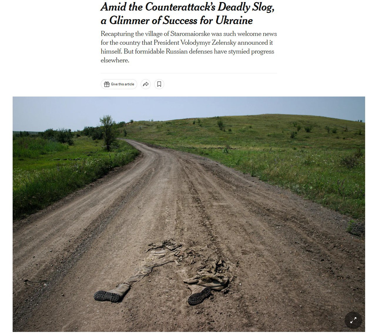 The New York Times пише про високі втрати українських військ під час наступу на півдні.
