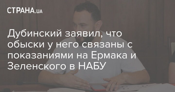 Дубинський заявив, що обшуки у нього пов'язані зі свідченнями на Єрмака та Зеленського в НАБУ