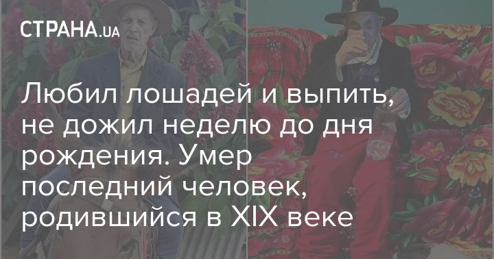 Любив коней та випити, не дожив тиждень до дня народження. Померла остання людина, яка народилася в XIX столітті