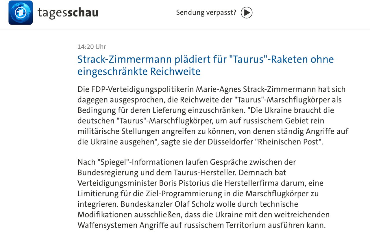 Ще недавно міністр оборони ФРН також публічно говорив, що   Берлін не має наміру передавати Україні далекобійні ракети.