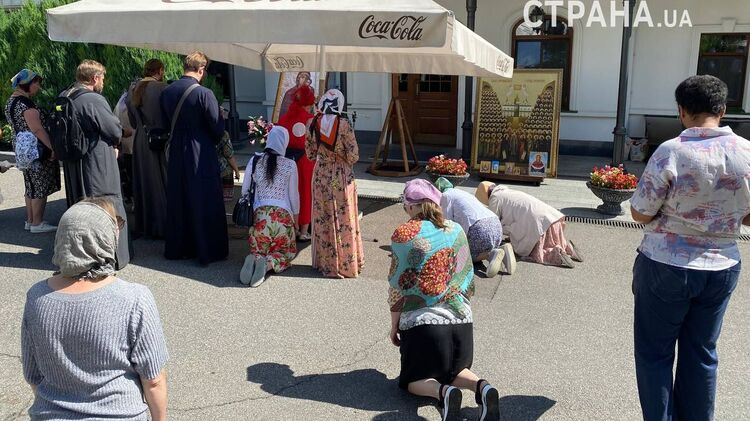 Біля головних воріт Києво-Печерської лаври віруючі Української православної церкви (УПЦ) продовжують молитовне стояння. Через зачинені ворота обителі священики проводять парафіян, оскільки тих на територію лаври не допускають.
