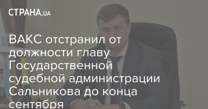 ВАКС усунув з посади до кінця вересня голову Державної судової адміністрації України Олексія Сальникова, якого НАБУ підозрює у підбурюванні до хабара суддям Верховного Суду за ухвалення потрібного рішення на користь комерційного підприємства.
