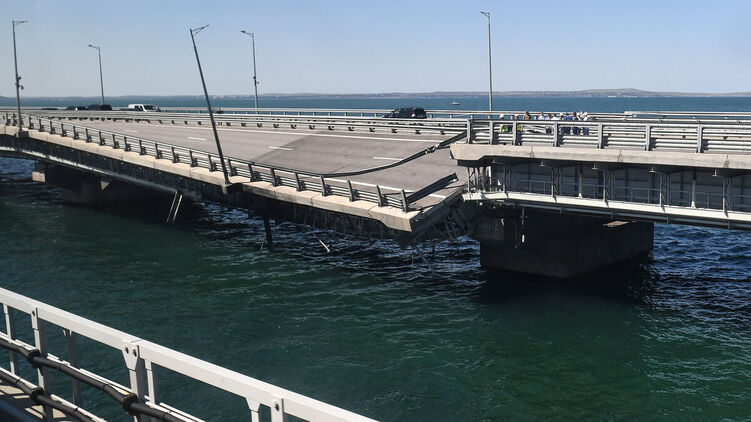 На кадрах видно, що залізнична гілка моста також була атакована. Однак вона не зазнала сильних пошкоджень.