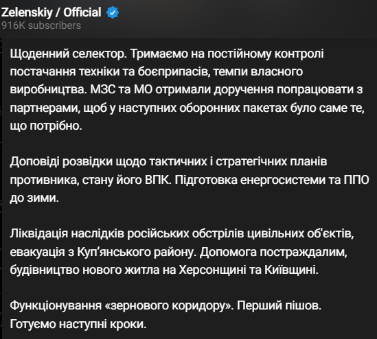 У четвер, 17 серпня, президент України Володимир Зеленський повідомив, що провів щоденну селекторну нараду.