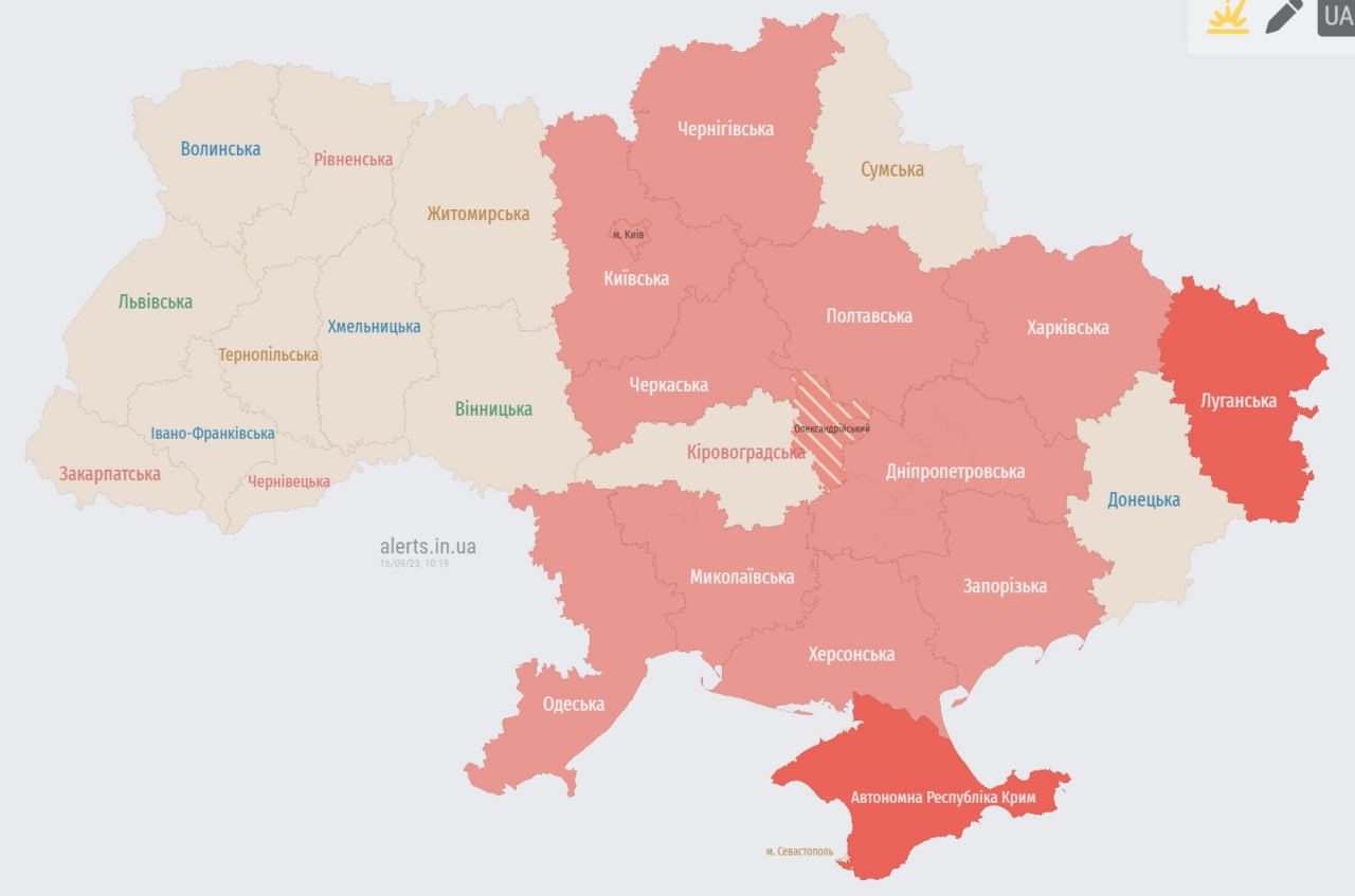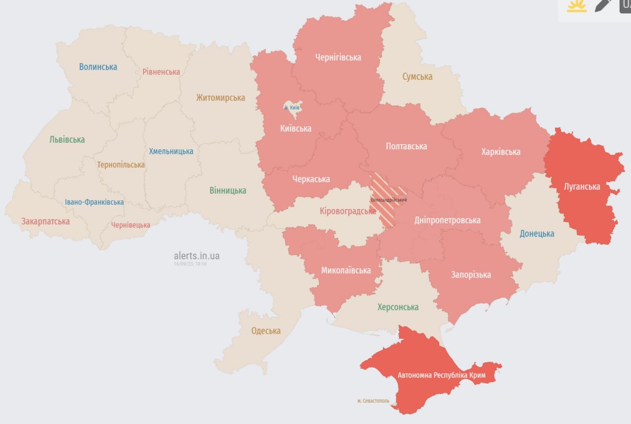 11:16 У областях, де оголошено тривогу - загроза застосування балістичних ракет.