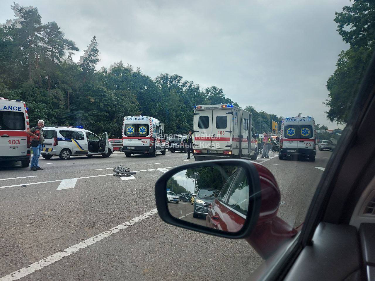 Масштабна ДТП за участю п'яти автомобілів сталася під Києвом у районі Петропавлівської Борщагівки біля санаторію "Перемога".