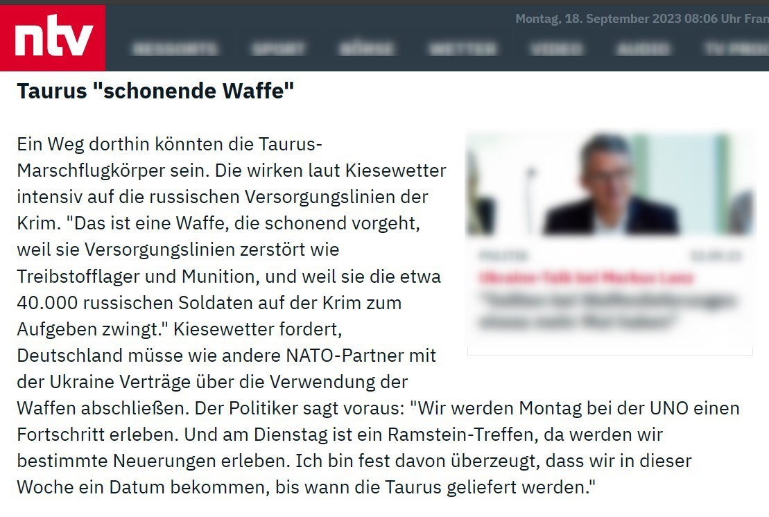 09.10 Німецький депутат Бунестагу Родеріх Кізеветтер (ХДС) прогнозує, що Німеччина ухвалить рішення про постачання Україні далекобійних ракет Taurus вже найближчими днями.