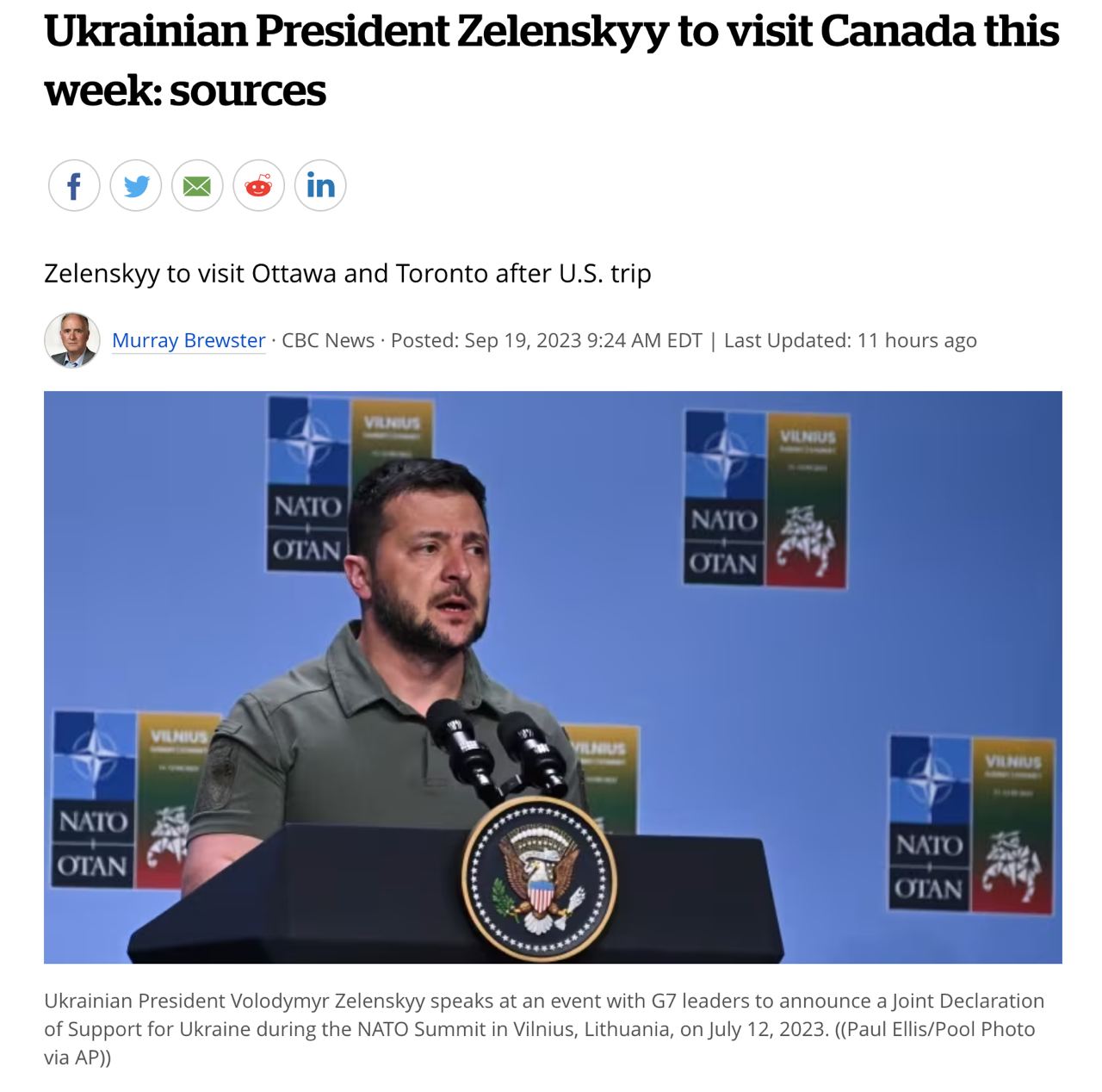 За даними американського телеканалу, під час візиту президент України виступить перед парламентом в Оттаві, а потім вирушить до Торонто. Ймовірно, проситиме про додаткову військову допомогу.