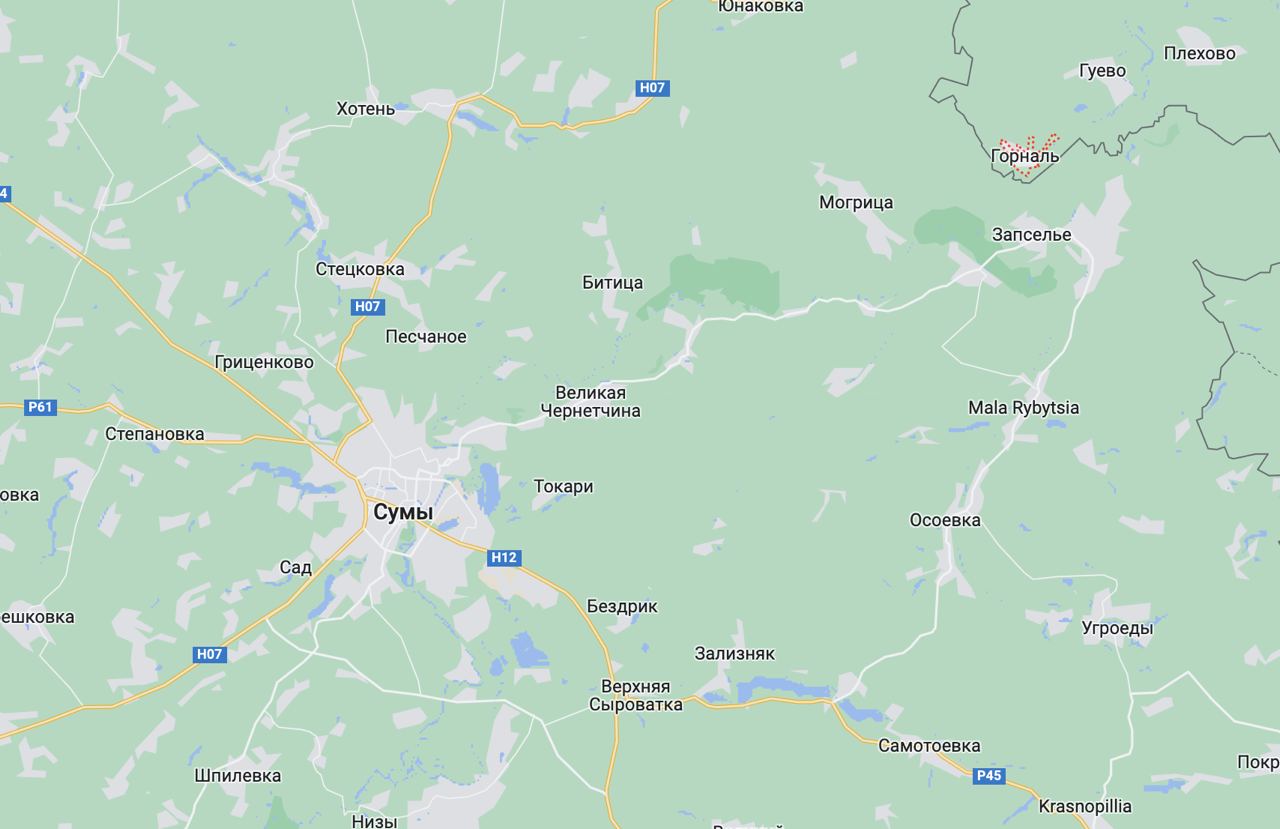 Місцеві паблики пишуть, що йдеться про село Горналь у Курській області, яке знаходиться на кордоні із Сумською областю.