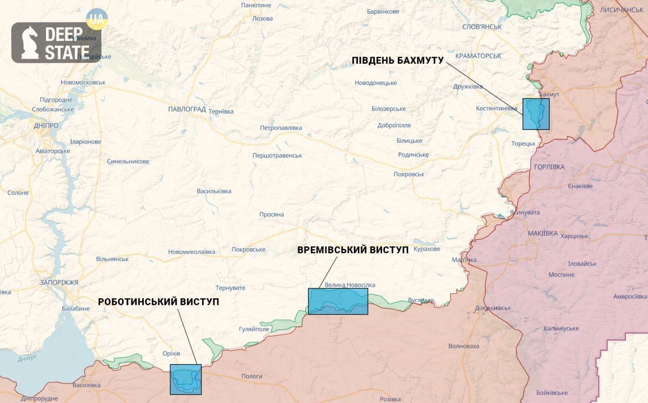 1. Бахмутський напрямок. Оточення міста поки що не виходить. Звільнення Андріївки та Кліщеївки на півдні дає можливості для подальшого удару у бік траси на Горлівку. На півночі було допущено "стратегічну помилку": штурм Берхівки у пристріляній низовині "дорого нам коштував", а ініціатива перейшла до РФ. Спроби пробити оборону РФ у Залізнянського та Роздолівки не принесли успіху.