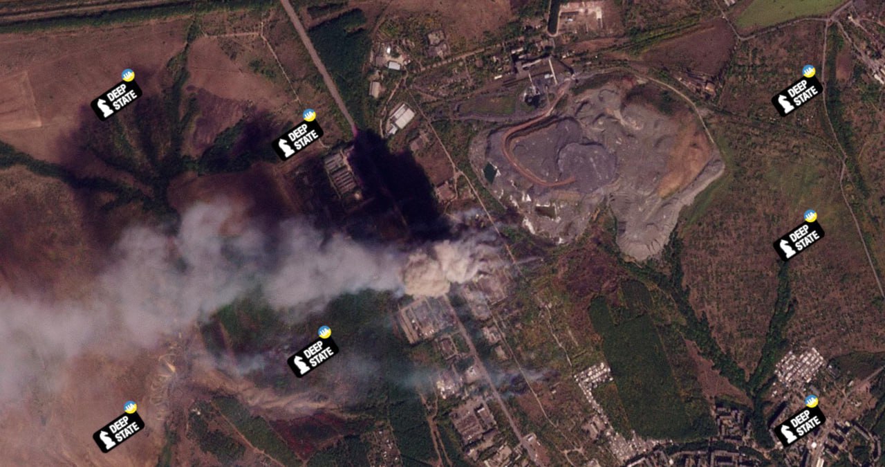 19.09 Супутниковий знімок наслідків удару в окупованому Сорокиному Луганській області, де, як стверджується, було вражено склад боєприпасів на заводі "Юність".