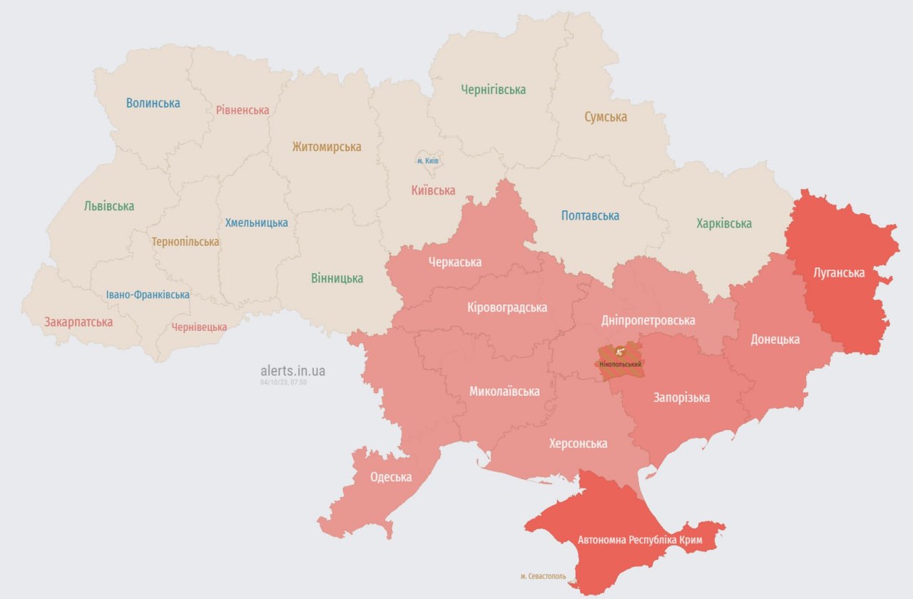 08.50 Україною поширюється тривога. Жителів Кривого Рогу закликають іти в укриття, також оголосили загрозу ракетного удару по Одеській області.