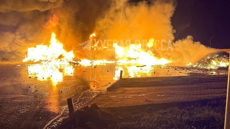 У мережі публікують фото та відео наслідків нічної атаки дронів Орловкою в районі Рені. На них видно фури, що горять.